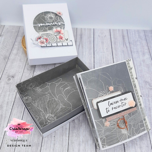 Je suis partie sur une structure de base, en accordéon qui s’accordait bien à la série de photo que je voulais mettre en valeur. Pour apporter un petit plus, je me suis amusée à créer une boite de toute pièce aux dimensions de mon mini, parfaite pour offrir un petit cadeau 😉.
